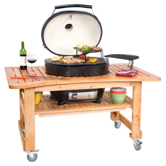 Heavy-duty ceramic, egg-type Kamodo grills are well-liked because once they get hot, well, they tend to stay hot. In other words, they cook well and deliver a flavorful, smoky flavor.