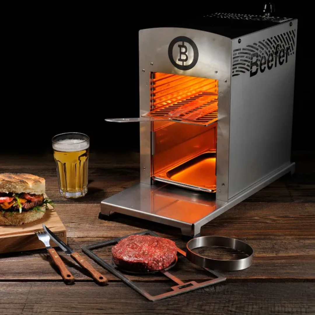 Beefer® being an awesome brand name aside, this restaurant-quality gas grill can deliver temperatures up to a whopping 1,500º F so that you can sear and caramelize your steak (while the top-mounted ceramic burner lets you collect the drippings for later use in your sauce of choice, of course) like the grill master that you are with serious speed.