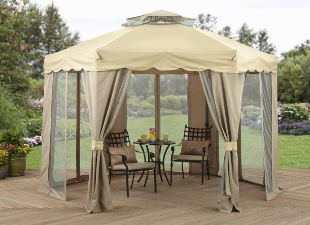 A simple albeit highly functional beige and light brown garden gazebo, this one is notable for its versatility, as it works great as a nap spot, a place to entertain guests, or simply as a tool that will no doubt liven up your outdoor space. Though it’s a bit pricy for a polyester gazebo, it comes with adjustable netting as well as canvas wall panels and curtains (it should be noted that air can still flow through the bottom due to the absence of curtain support) that can be attached and zipped in order to make the gazebo look and feel like a true escape. Easier to assemble than the Hardtop Gazebo from Kozyard Alexander, this classic-looking gem is available right HERE.